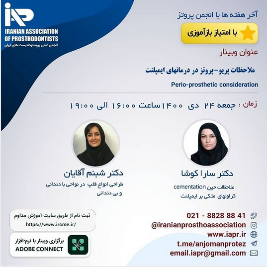 پروتزیست فرید هاشمنژاد، رئیس جامعه دندانسازان ایران، نیز با تقدیر از زحمات اعضا و برگزارکنندگان، بر ادامه مسیر علمی و صنفی با قدرت بیشتر تأکید کرد.